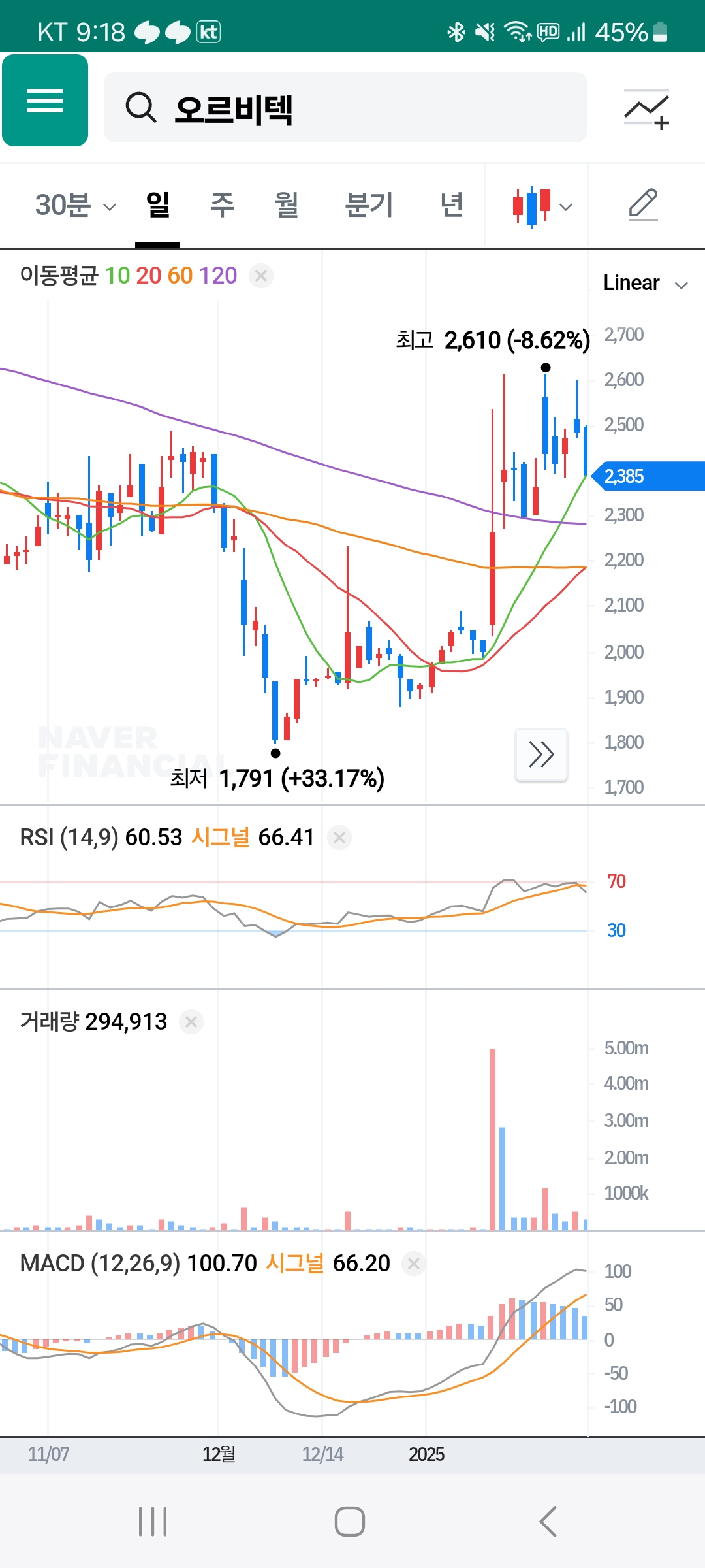 6.오르비텍 (이동평균선 모두 정배열)-매출 영익 모두