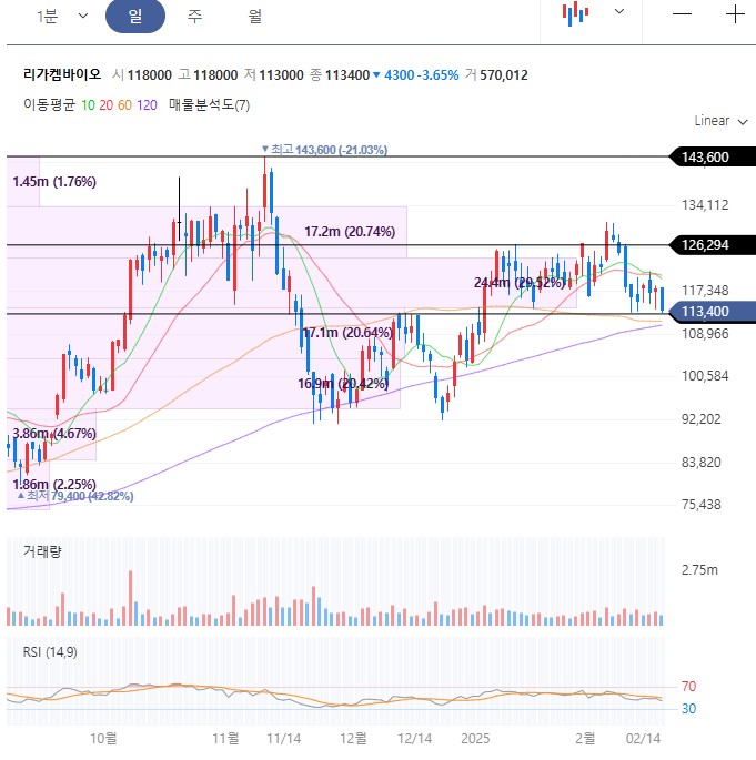 3. 1월 31일 손잡이 형으로 이전 캔들을 돌파했다. 126,500원